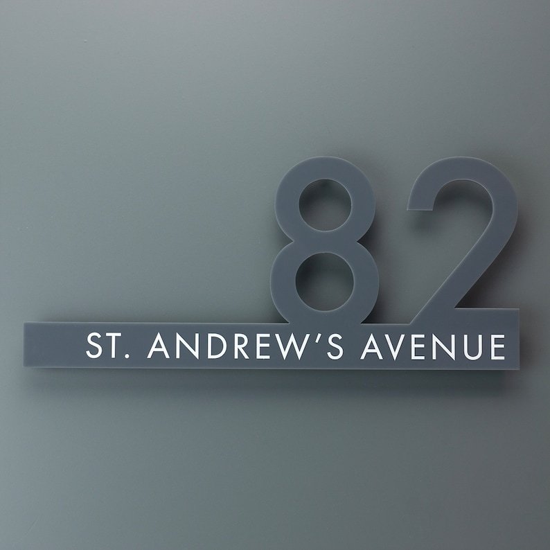 The Contemporary Cut Out Modern House Number Sign Printed Address Signage – Matt & Gloss Finishes goes beyond functionality. It’s designed with precision to balance readability, durability, and visual appeal. The bold, cut-out design makes your house number stand out, ensuring it’s easy to find while doubling as a piece of exterior décor.