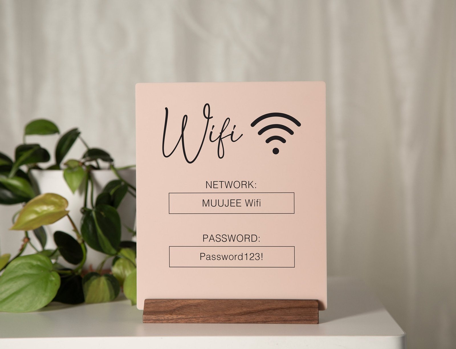 - Customizable design: Personalize the sign with your wifi network name and password, as well as any additional instructions or branding elements.